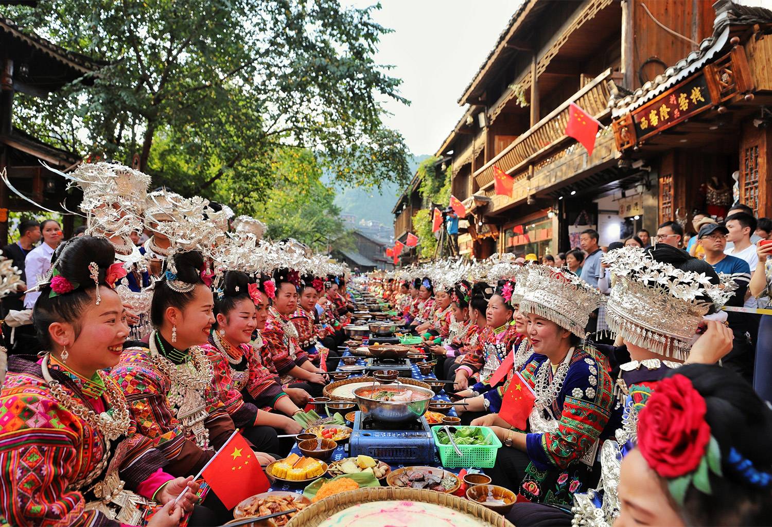 早餐後,前往乘車前往西江,然後遊覽以美麗回答一切,看西江知天下苗寨的【西江千戶苗寨 ( 含4程電瓶車 ) 】午餐中式料理,然後前往遊覽【西江苗族博物館】,更加深入的瞭解,苗族的一些文化。晚餐高山流水長桌宴,然後入住酒店。